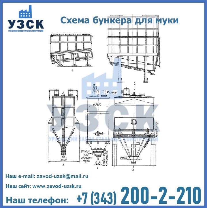 Завод «УЗСК» в Сергиевом Посаде осуществляет проектирование, производство и продажу бункеров для муки. Всю информацию, касающуюся производства, реализации и установки емкостного оборудования можно узнать на нашем сайте или по телефонам, указанным в разделе «КОНТАКТЫ».