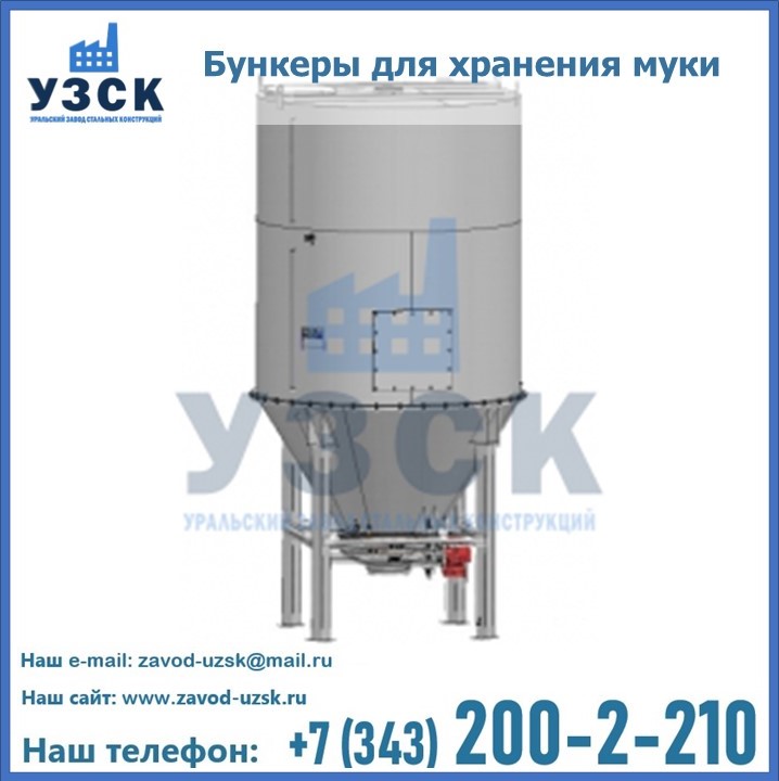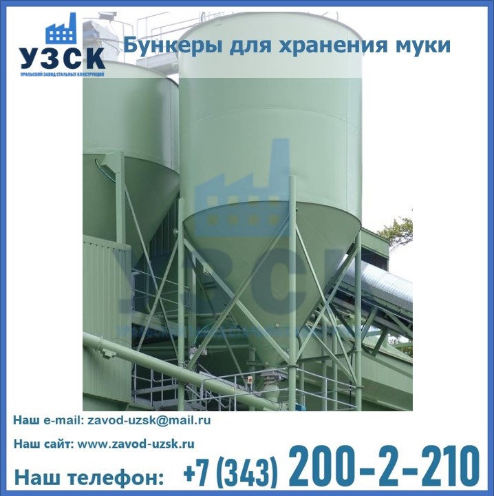 Завод «УЗСК» в Сергиевом Посаде проектирует, производит и поставляет целевое оборудование, в том числе, бункеры для хранения муки и прочих сыпучих материалов.