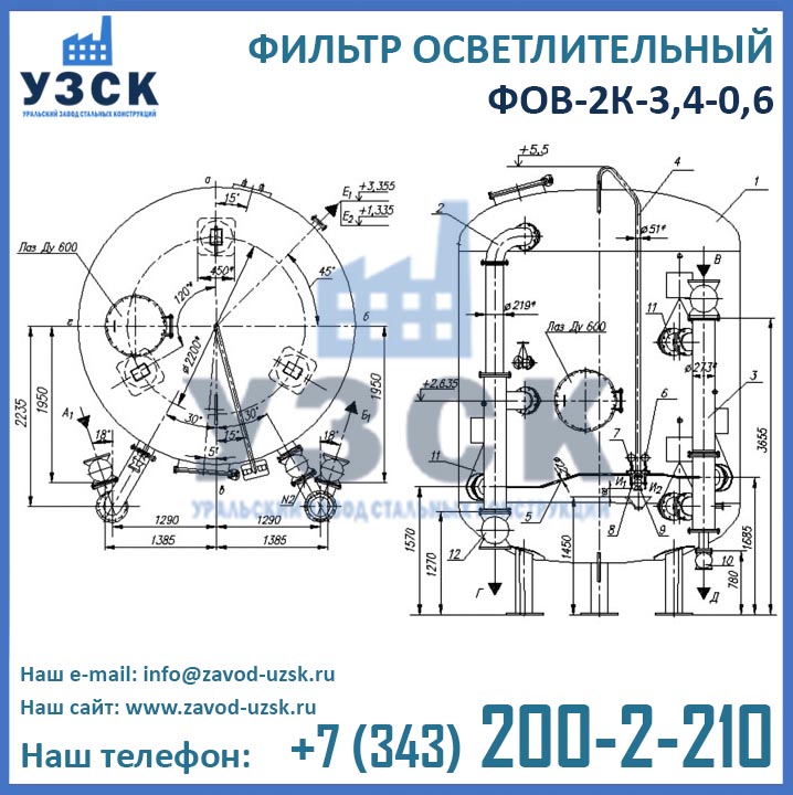 Главная > Фильтры > Фильтр осветлительный типа ФОВ > Фильтр осветлительный двухкамерный ФОВ-2К-3,4-0,6