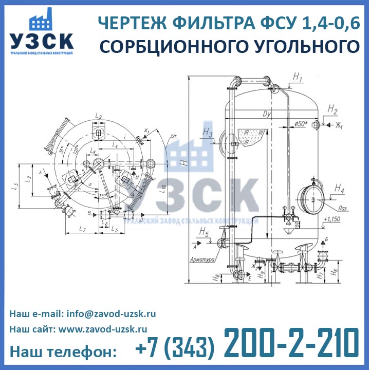 Если вы ищете фильтры ФСУ-1,4-0,6 в Сергиевом Посаде от изготовителя, то Вы на правильном пути! Уральский завод стальных конструкций – непосредственный производитель сорбционных фильтров ФСУ, предлагающий самые выгодные цены на ФСУ-1.4-0.6 в Сергиевом Посаде. По окончании процесса производства угольные фильтры проходят гидравлические испытания пробным давлением 0,9 МПа на аттестованном гидростенде, находящимся в собственности завода УЗСК. Мы гарантируем высокое качество выпускаемой продукции, и в этом уже убедились ведущие предприятия промышленного сектора России и стран ЕАЭС (см. раздел «Наши клиенты»).