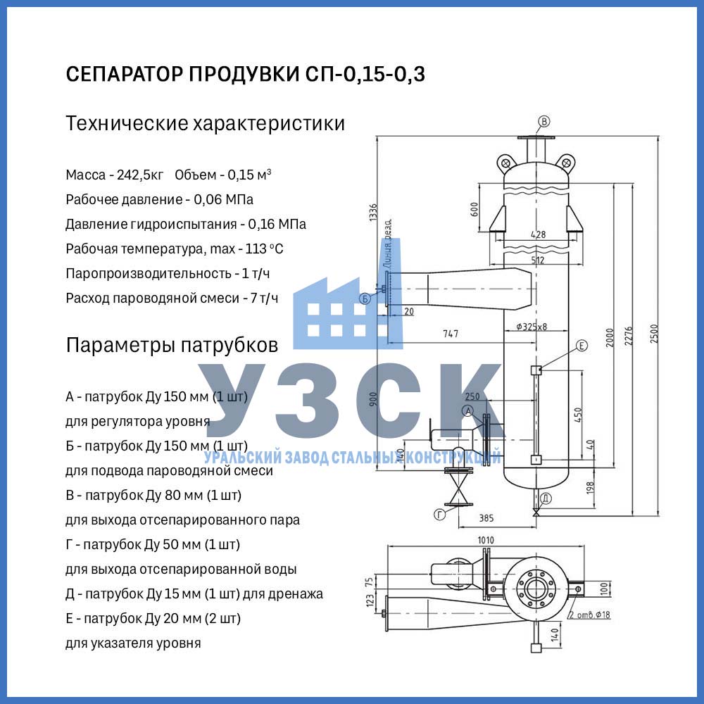 Компания «УЗСК» производит надежные сепараторы продувки типов СП и СНП, соответствующие требованиям ТР ТС 032/2013, для работы в составе систем теплоснабжения и технологических линий.