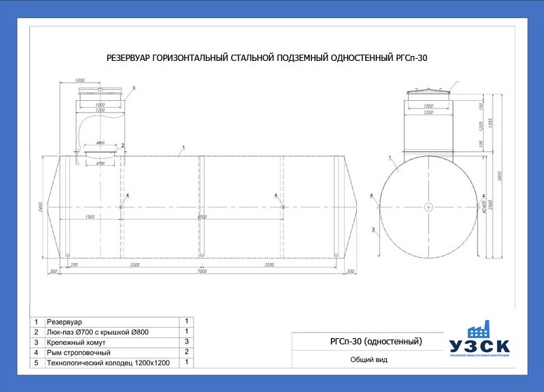 Объём данного резервуара составляет 30 кубических метров, что является средним показателем достаточным для реализации потребности в хранении тех или иных жидкостей.