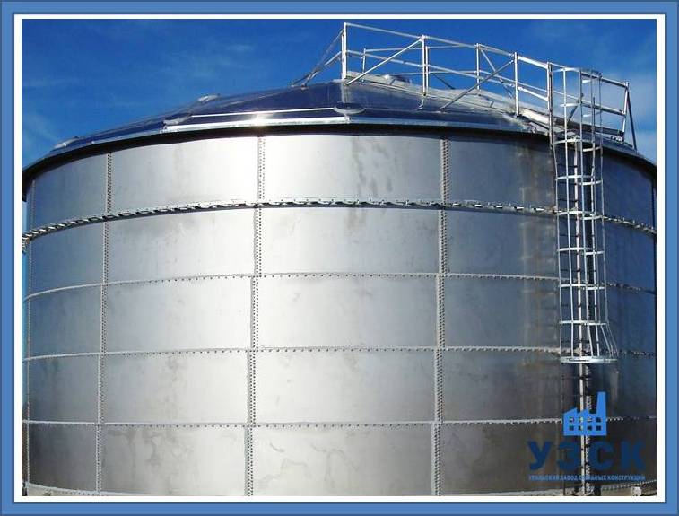 На строительной площадке, на подготовленном ложе собирают стенки, днище и крышу. Устанавливают понтон и все конструкции. Перед сдачей емкость проходит гидравлические испытания.